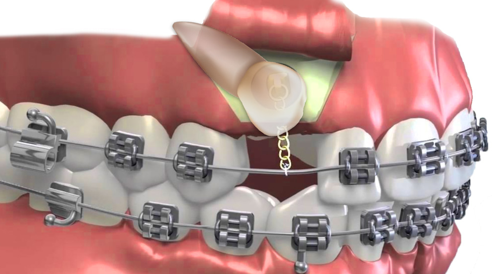 Este tratamiento se realiza generalmente en caninos y premolares que no han erupcionado debido a cierres de espacio durante el desarrollo. Se llevan a su lugar correcto por medio de una técnica de cirugía y ortodoncia combinada.