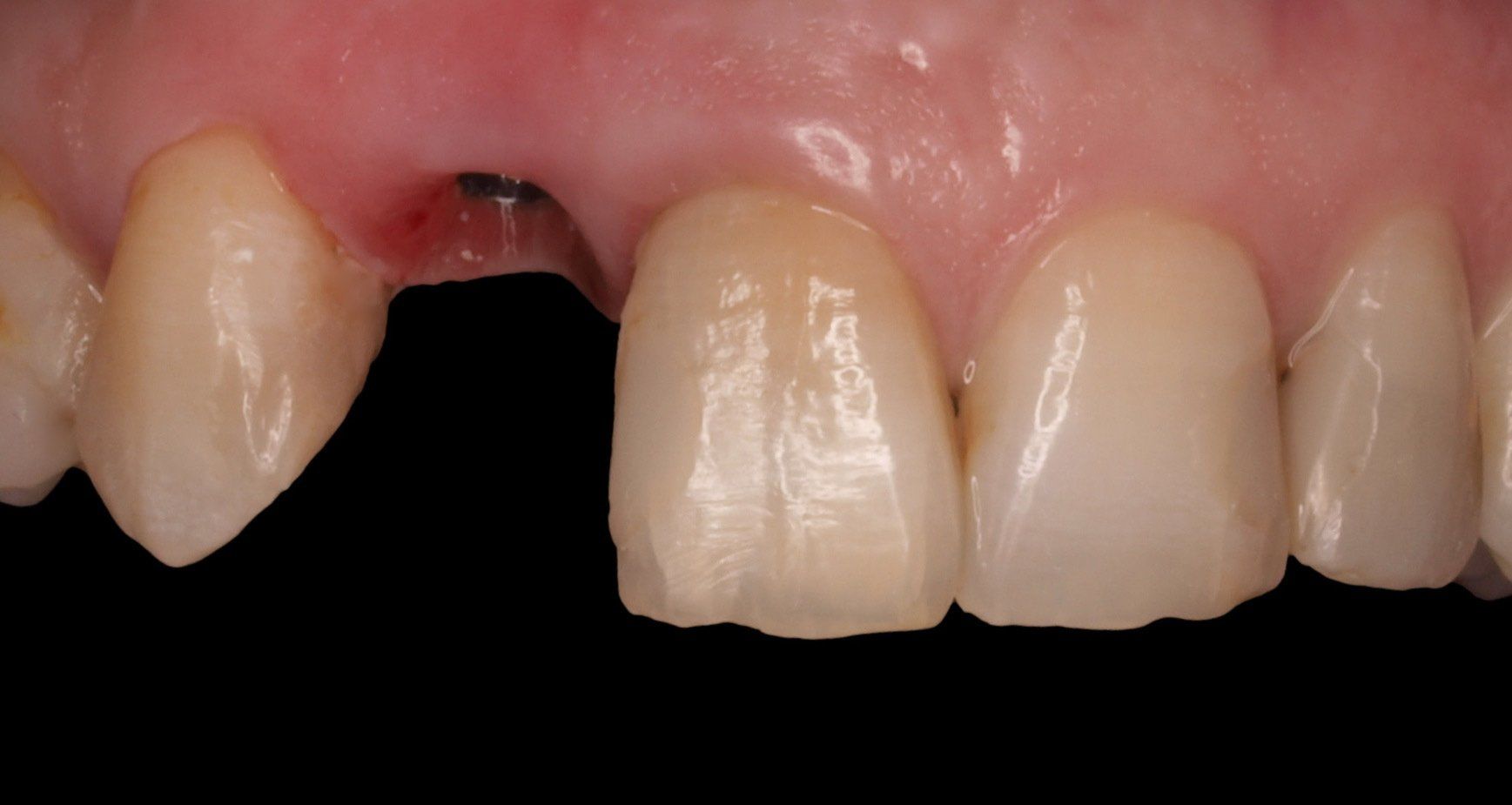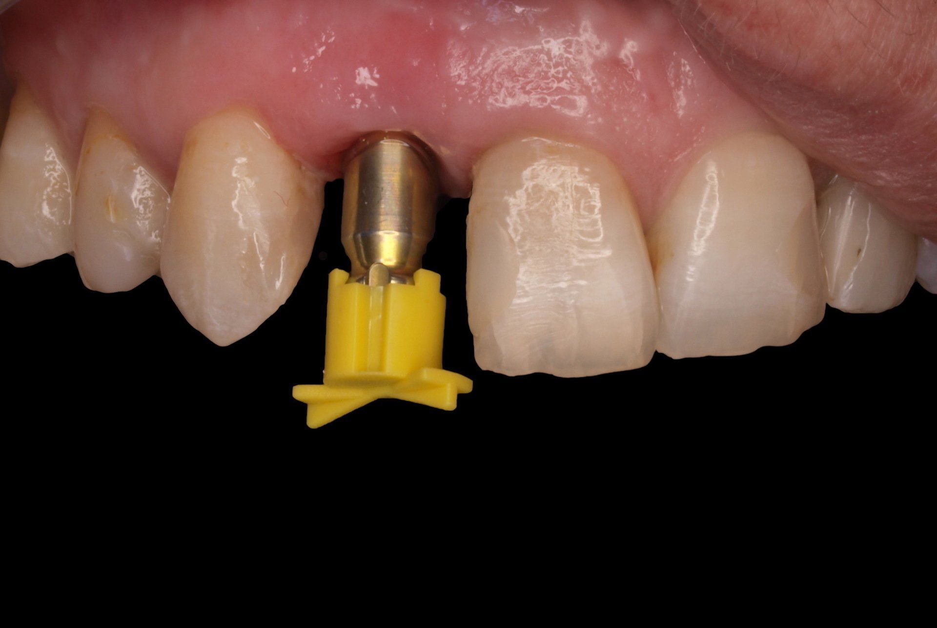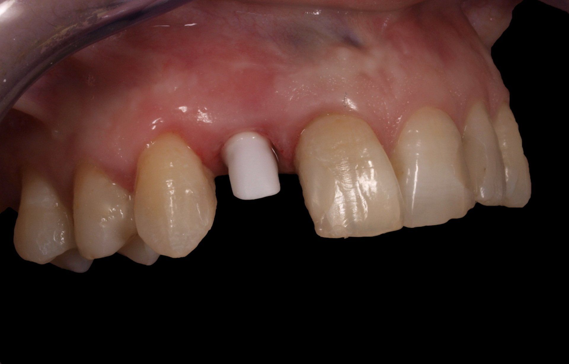 Paciente de 45 años acude a nuestra consulta con fractura vertical en incisivo superior derecho. Se realizó extracción y colocación inmediata de implante. En la misma sesión se toma impresión para la confecciòn de pilar de zirconio y corona inmediata provisional. Dos meses después se colocó una corona definitiva de disilicato (cerámica sin metal inyectada).